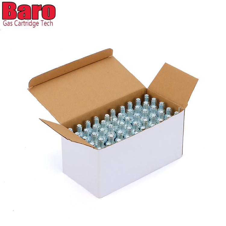 - 新しい 12g ネジ式 CO2 カートリッジ パッケージ、強力なパッケージ、輸送時の損傷耐性があり、小売に最適です。