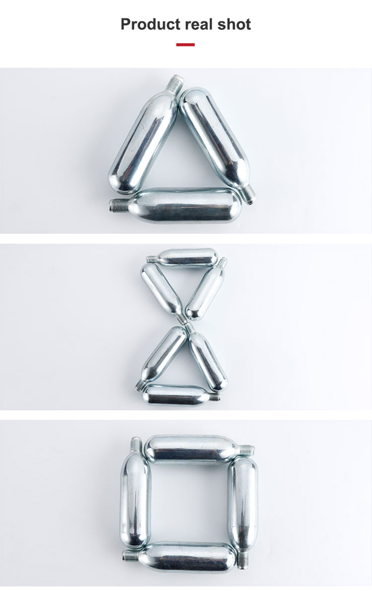 74g CO2 カートリッジは、5/8 インチ -18 ネジカートリッジを必要とするすべての飲料機器で使用されます。これらの 74g CO2 非詰め替えカートリッジは、飲料の保存、炭酸化、分注用に設計されています。空のインク カートリッジは、スープや飲料などの家庭用リサイクル可能物と一緒に保管してください。缶は軟鋼製で、飲料業界の厳しいニーズを満たすように設計されています。これは、密閉された穴あきキャップを溶接することを意味します。当社のピアスレギュレーターにねじ込んで蓋に穴を開けない限り、何年も漏れることはありません。